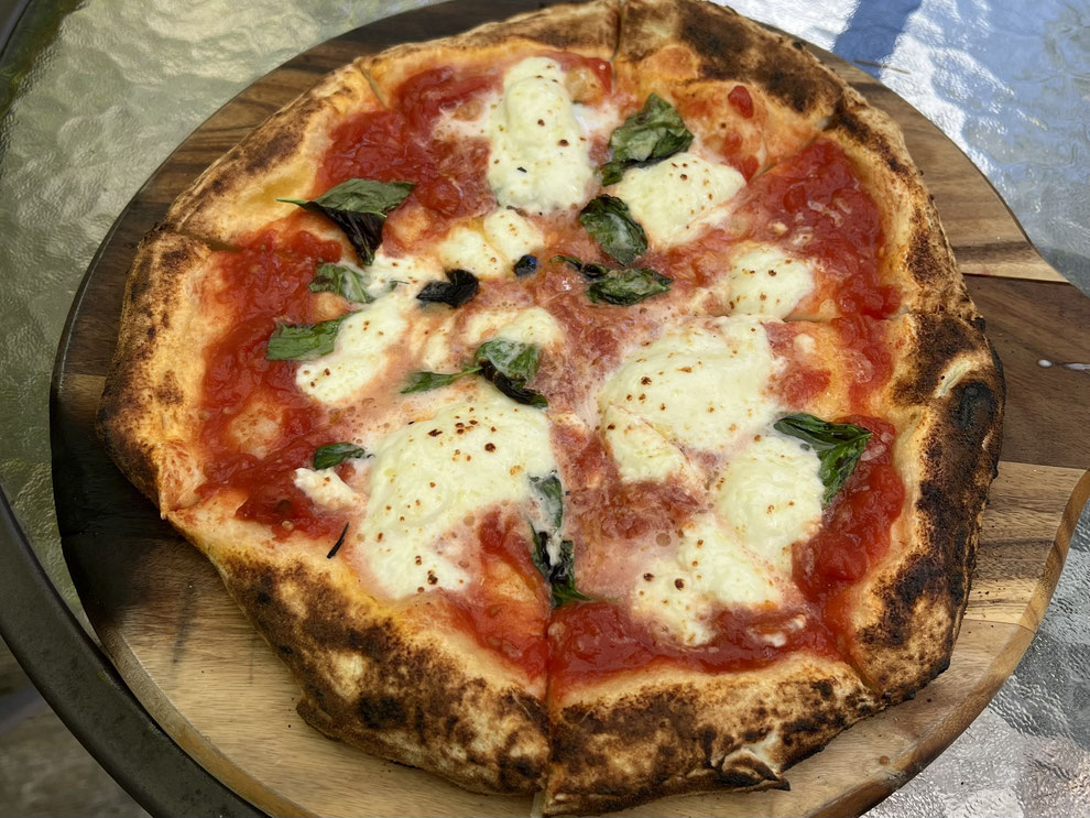 高温のピザ釜で一気に焼き上げることで、生地は外はパリッと香ばしく、中はもっちりとした食感に。